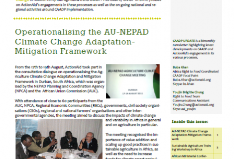 CAADP UPDATE, produced by the International Right to Food Team, highlights key events and issues around agricultural discourse in Africa, to update countries on ActionAid’s engagement in the CAADP process, and to share our plans and key dates for future events.