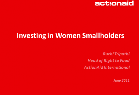 This is a presentation given by Ruchi Tripathi, Head of Right to Food, at the 17th Session of the UN Human Rights Council (HRC) - High Panel on Women, Poverty, Crises, Trade and Human Rights - on 3 June, 2011 in Geneva.